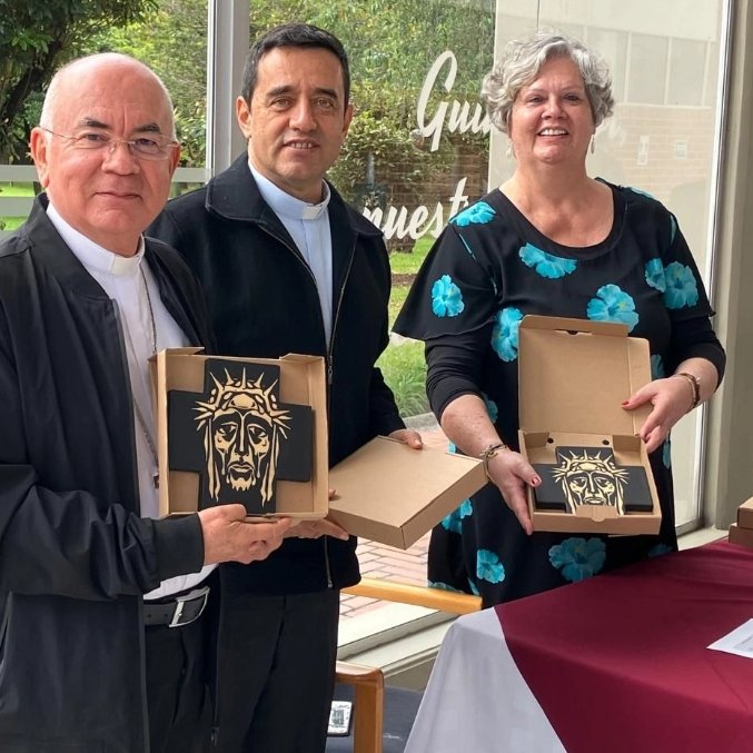 En ocasión del 60 aniversario de la Hermandad Aquisgrán – Colombia se entregó una réplica de la Cruz de la Paz de Aquisgrán a cada una de las 14 provincias eclesiásticas del país como símbolo de esta unión fraterna. En la Asamblea Plenaria de los obispos colombianos en febrero 2025, también cada obispo recibió una réplica fiel de la Cruz de la Paz para su respectiva Diócesis. Además, se incluyó este símbolo en una de las celebraciones litúrgicas de los Obispos durante la Asamblea.